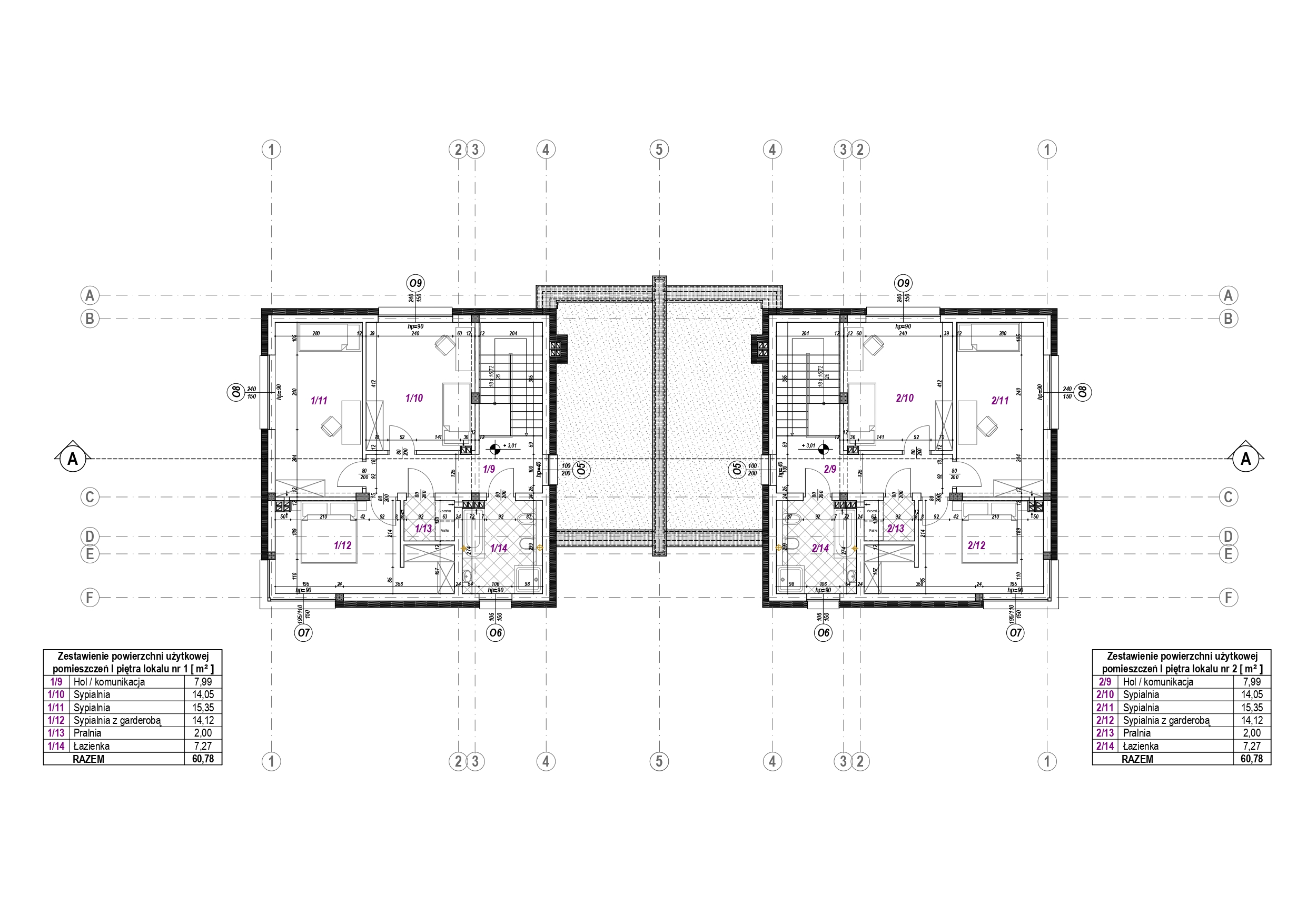 Piętro (pow. 60,78 m2) składa się z 3 funkcjonalnych sypialni w tym jednej z garderobą oraz pralnią (możliwa zamiana funkcji na dodatkowy pokój).